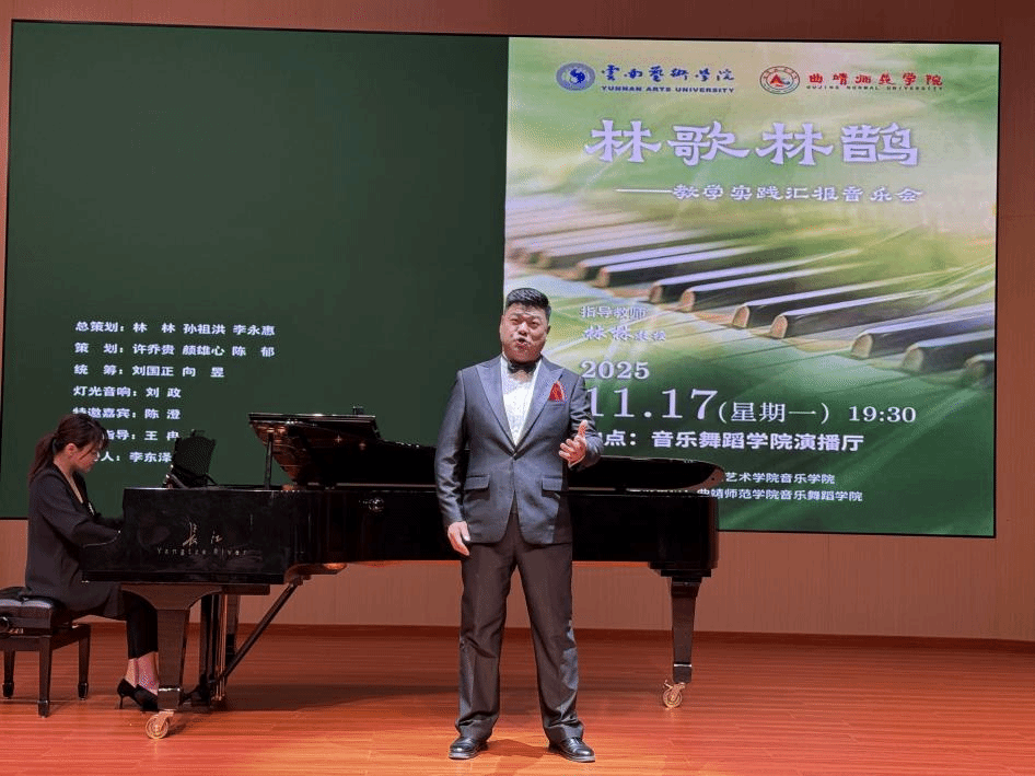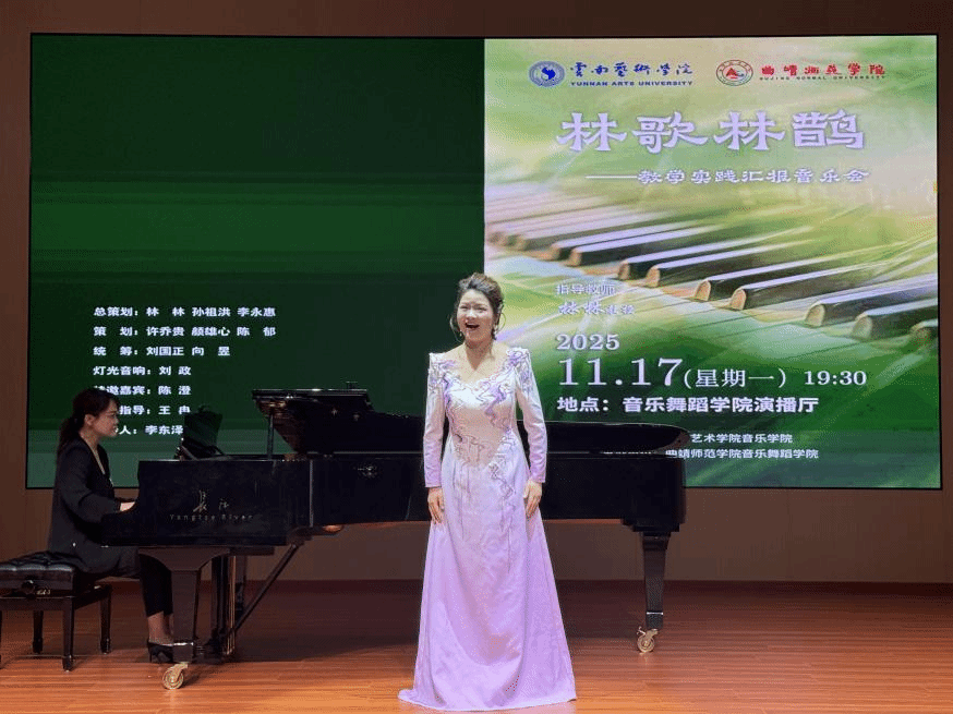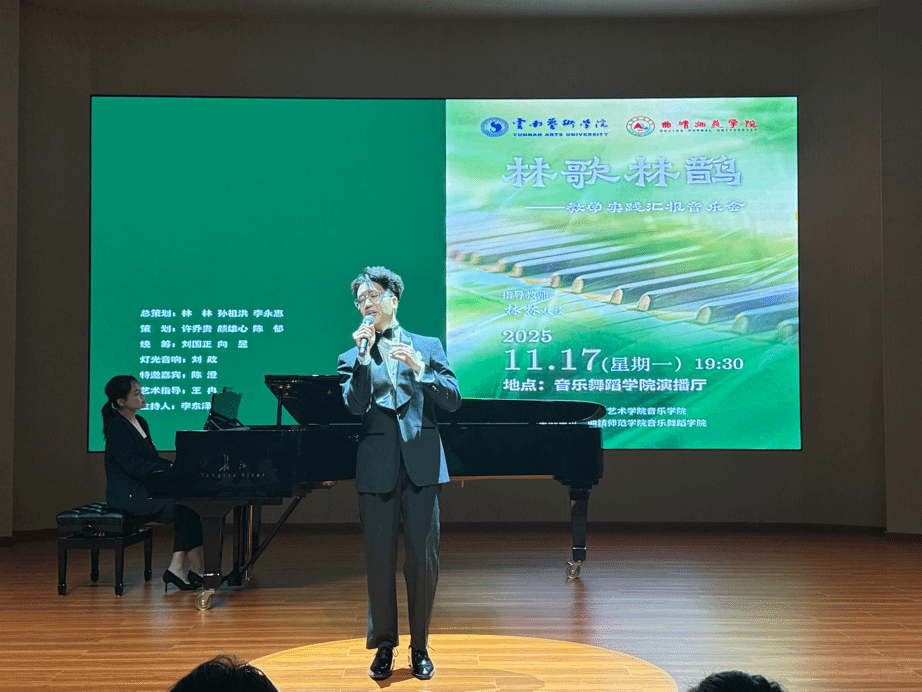 2025年11月17日,“林歌林鹊”——林林教授教学实践汇报音乐会在曲靖师范学院音乐舞蹈学院演播厅圆满举行。此次音乐会由十大买球官方网站主办,曲靖师范学院音乐舞蹈学院承办。