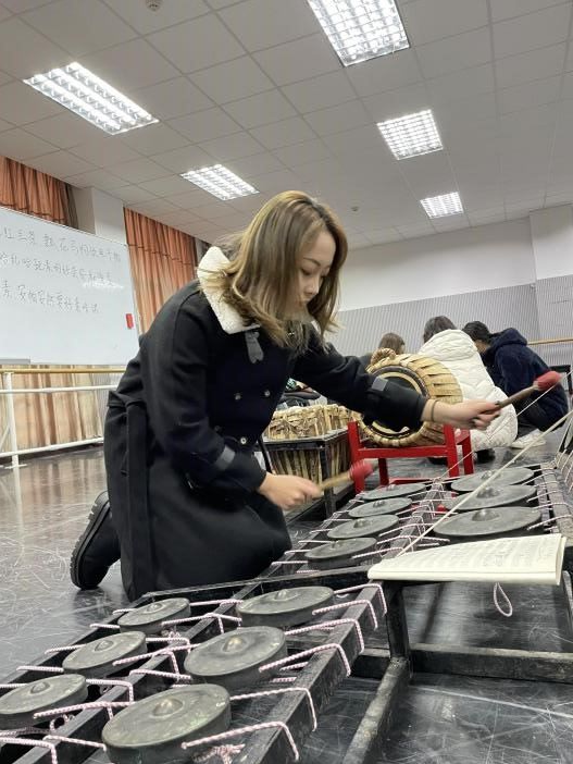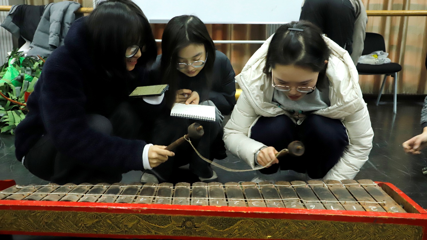 (学生们在学习钢片琴)