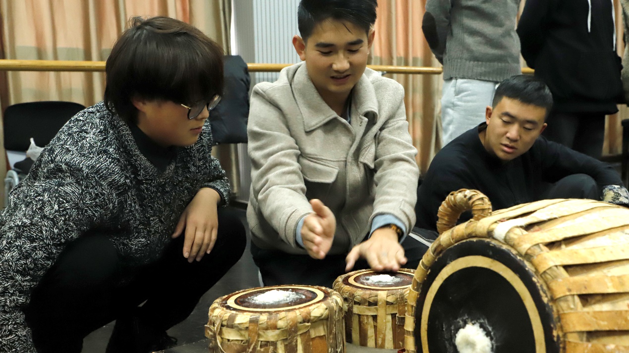 西双版纳的传承人也对傣语歌曲及象脚鼓舞进行了教学。