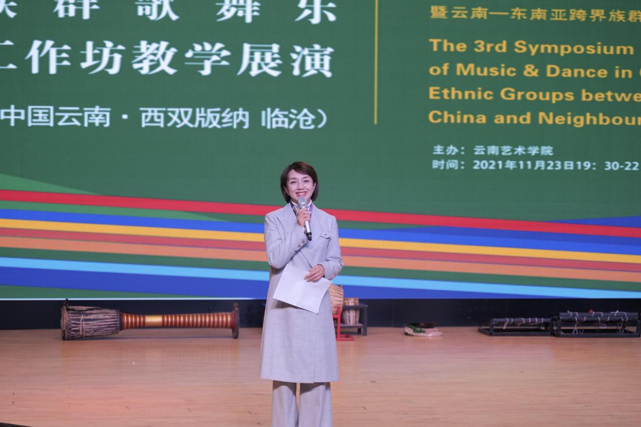 活动伊始由我校十大买球官方网站院长林林致辞,林院长首先回顾总结了“第三届中国(南方)与周边国家跨界族群音乐文化国际论坛暨云南——东南亚跨界歌舞乐交流工作坊”线上会场学术活动情况。其次,她指出本次工作坊由十大买球官方网站主办,是本次跨界族群音乐文化国际论坛中的重要组成部分;是十大买球官方网站、舞蹈学院体现国际视野下,地方特色办学理念的实践与探索;也是我校秉承延续传统、走向世界与未来的理念下,民族音乐文化的交流与传播。