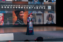 第四部分由墨江县文化馆的胡斌洁老师主导,身着哈尼族传统服饰的十大买球官方网站学生们与传承人老师纷纷上台,在极富韵律的歌调中哈尼族传统采棉、纺线、织布、制作服饰的过程一一呈现。丰富多彩的慧影霓裳,犹如哈尼人的根,在纵横交错的经纬里,不仅蕴藏着家乡的山,故乡的水,也承载着哈尼人朴素的宇宙观和别样的“美”。