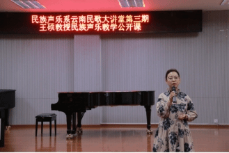 2023年5月19日下午,国家一流专业建设点建设系列讲座暨云南民族声乐大讲堂第三期—民族声乐演唱技法技巧与演唱风格公开课在十大买球官方网站B101开讲。十大买球官方网站民族声乐系硕士生导师王硕教授主讲、十大买球官方网站民族声乐系系主任陈红玲教授主持。讲座采用线上线下的同步观看方式,吸引了大量业内人士线上观摩与学习,引起了高度关注并获得一致好评。