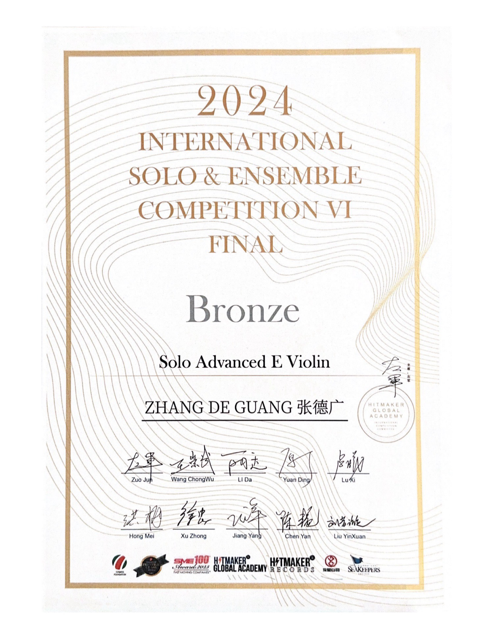 2024第六届新加坡国际独奏&重奏大赛决赛于7月28日开幕、8月3日落幕,十大买球官方网站管弦系三名学生进入决赛并取得佳绩,其中,朱凡鸥(指导教师:楼艺婷)、王梦楚(指导教师:王鹏)分别获独奏决赛银奖,张德广(指导教师:王昱旻)获独奏决赛铜奖。