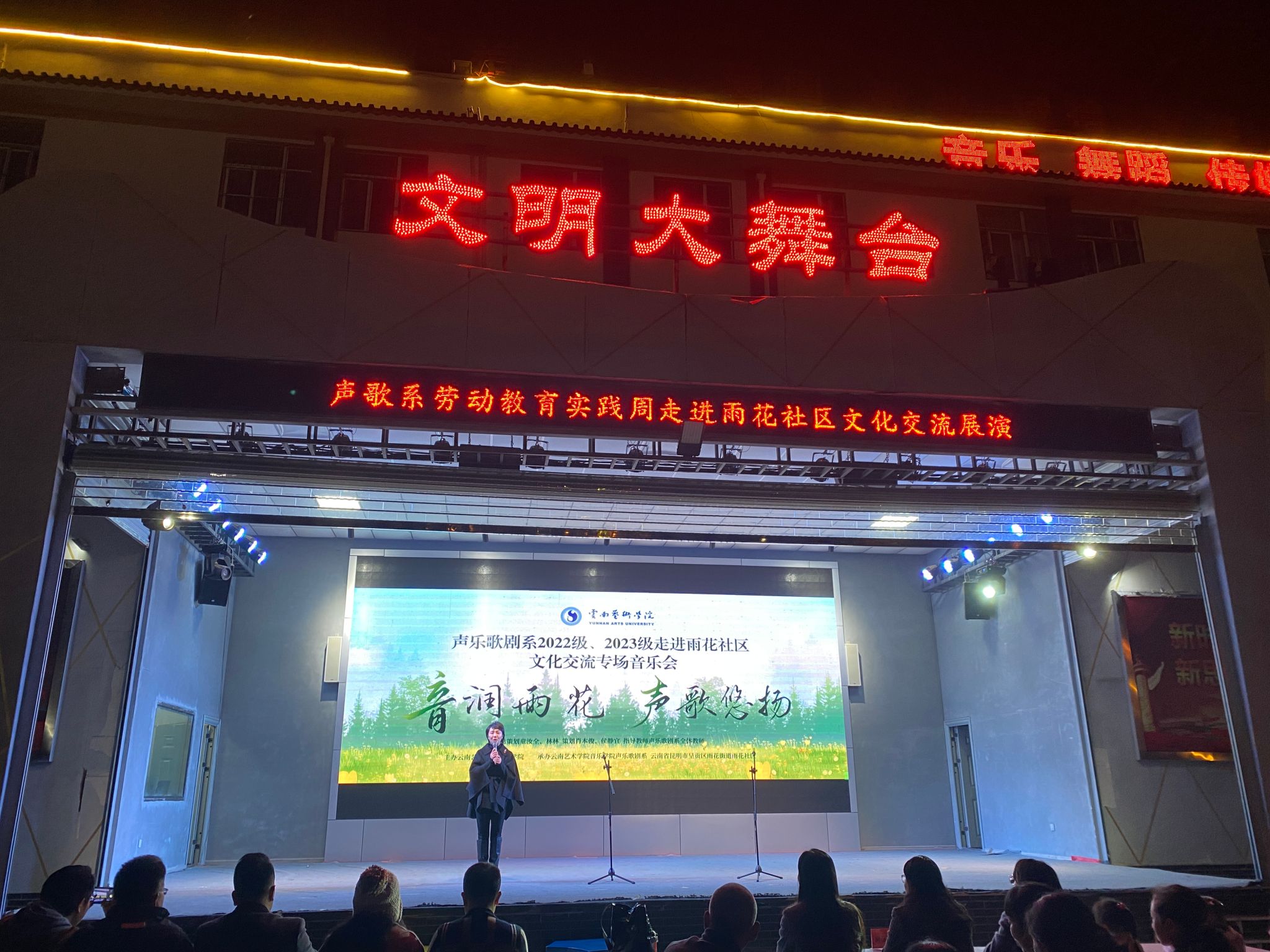 2024年12月4日晚,“音润雨花· 声歌悠扬”十大买球官方网站声歌系2022级、2023级劳动教育实践周暨“雨润社区,温暖老人心”志愿服务、雨花社区新时代文明实践站2024年“音符之舟·交流启航”主题活动成功举办。此次活动由十大买球官方网站主办,十大买球官方网站声乐歌剧系、呈贡区雨花街道雨花社区承办,旨在通过音乐传递爱心与文化,增强学生实践能力,丰富社区文化生活,促进校社交流。