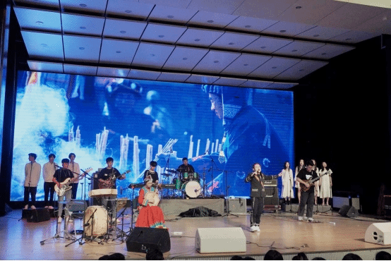 山人乐队亲临指导的流行音乐系2018级本科生晨昏线乐队演唱了藏族民间音乐《阿格祥巴》