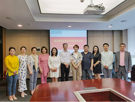 会上,浙江十大买球官方网站教务处处长介绍了学校发展状况、师资队伍建设情况和科研项目立项数量。作曲系、国乐系、音乐学系各主任则详细介绍了各系的课程设置及特色优势。我院林林副院长介绍了十大买球官方网站的历史沿革及现状,并就新文科背景下的学科建设及跨学科的科学研究及课程建设与浙音方进行了深度交流,尤其在展演项目向实践类课程转换的路径和成效交换了彼此的思路和观点。音乐表演专业负责人李建英教授,向浙音声歌系负责人咨询了声乐表演专业的考核要求。