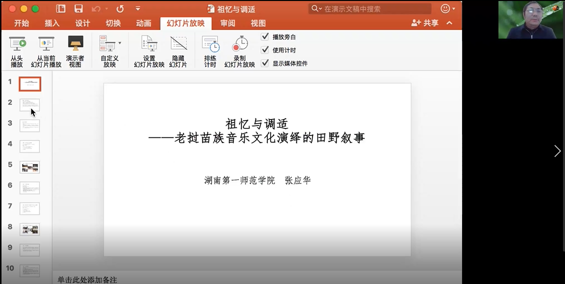 湖南第一师范学校张应华在题为《祖忆与调适----老挝苗族音乐文化演绎的田野叙事》发言中,谈及对此研究对象的研究应用了“线索民族志”的研究方法,在老挝三个苗寨的多点考察和线索追踪中通过人与人、人与乐、人与文化的相遇来“追述”老挝苗族音乐文化的历史记忆及其迁徙线索,同时采用苗族局内人的反观与互视来发现黔西北苗族和老挝苗族同源文化现象在当下的异同。通过多个案例的叙事,虽然老挝苗族的祖先记忆逐渐走向模糊,且无法确认具体的迁徙路线,但还是可以看到老挝苗族的文化体系中祖先记忆仍然占有绝对比重。其研究的思路、方法与观念是一种——走访式田野,以完全局外的观察,沿着迁徙路线的空间追踪与历史追踪,通过录像解读。随后通过四个个案的详细解读,实证性的阐释了其研究思路、研究方法,完成了老挝苗族音乐文化演绎的田野叙事。