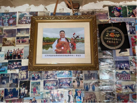 次日,穿越蜿蜒的山径,在龙朋镇巴窝村,国家级彝族海菜腔烟盒舞传承人——后宝云先生为田野实践组展示了更为原生的海菜腔和烟盒舞段落,此间,尤能体味歌者旋法的行进,如一路山道,时而直率,时而曲转,不能具名的既定音高位置,貌似散置的节奏,却暗藏固定的章法。正因由此,海菜腔的本真性,或说,远于西洋律制和固定节律的本然性魔力得到强烈释放。虽然,口传心授的传承方式注定个中原理的不可言说,不过,具体旋法和音高构造,文本表征方式,音色与语音的揉合,发声方式科学性等方面的问题,一一浮出水面,在田野实践组成员和歌者的交流中盘旋,民间艺人曼妙的形容与待证理论思绪碰出丝丝火花,瞬间催化出实践组研究的热情。转瞬,后老先生的即兴酒歌和对歌,打破了一群“书呆子”的深思,忘我的众乐在后老先生的小屋里迅速点燃。