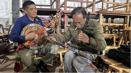正在调整音准的四弦琴和胡琴