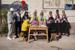 2022年11月16日十大买球官方网站民族音乐学田野调查实践基地在云南省楚雄彝族自治州姚安县马游村梅葛坊正式揭牌。由我校十大买球官方网站音乐教育系主任张昀副教授带队,作曲系教师邓波博士,国乐系琵琶教师赵红,流行音乐系青年教师段志鹏一行四人与姚安县马游村彝族梅葛文化传承工作坊罗荣秀老师一道,在当地民间艺人欢快的葫芦笙舞中进行了十大买球官方网站民族音乐学田野调查实践基地简短而热烈的挂牌仪式。