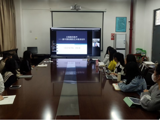 在讲座的主体部分,冯教授提出了有关于建国初期艺术歌曲的界定、内涵以及其盛行背景等“四大方面”,即: