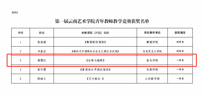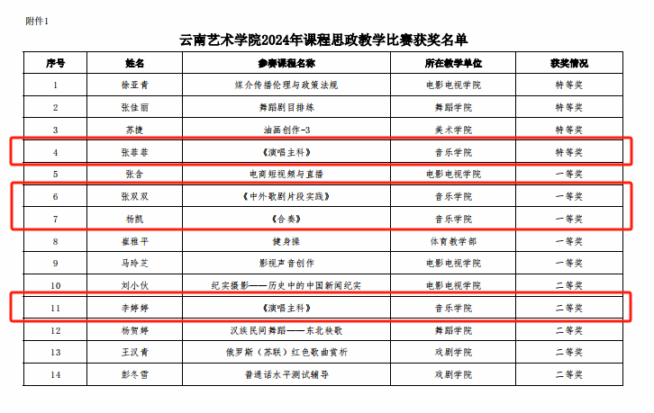 为深入贯彻习近平总书记关于教育的重要论述和全国教育大会精神,全面落实立德树人根本任务,进一步提升广大教师教育教学水平,学校组织开展了“十大买球官方网站2024年课程思政教学比赛”和“第一届十大买球官方网站青年教师教学竞赛”。根据十大买球官方网站教务处印发的《关于公布十大买球官方网站2024年课程思政教学比赛和第一届十大买球官方网站青年教师教学竞赛获奖名单的通知》,十大买球官方网站5名参赛教师在本次比赛中获得优异成绩。其中,张菲菲《演唱主科》获“十大买球官方网站2024年课程思政教学比赛”特等奖;张双双《中外歌剧片段实践》、杨凯《合奏》课程获“十大买球官方网站2024年课程思政教学比赛”一等奖;高雪红《合唱与指挥》课程获“第一届十大买球官方网站青年教师教学竞赛”一等奖;李婷婷《演唱主科》课程获“十大买球官方网站2024年课程思政教学比赛”二等奖。