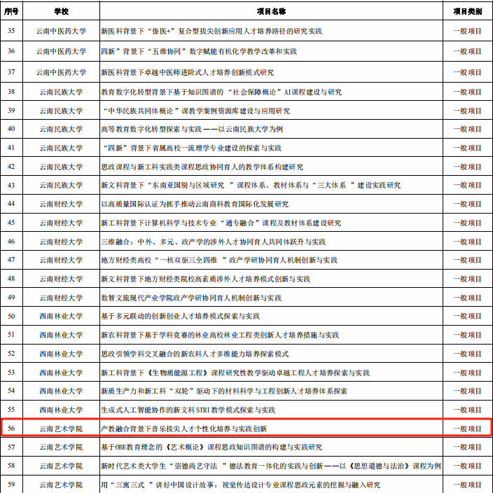 根据《云南省教育厅关于组织开展2024年本科高校教育教学改革研究项目申报立项工作的通知》要求,经学校申报、资格初审、专家网络评审、会议评审,由十大买球官方网站副院长侯静宜主持的项目《产教融合背景下音乐拔尖人才个性化培养与实践创新》获批一般项目立项。