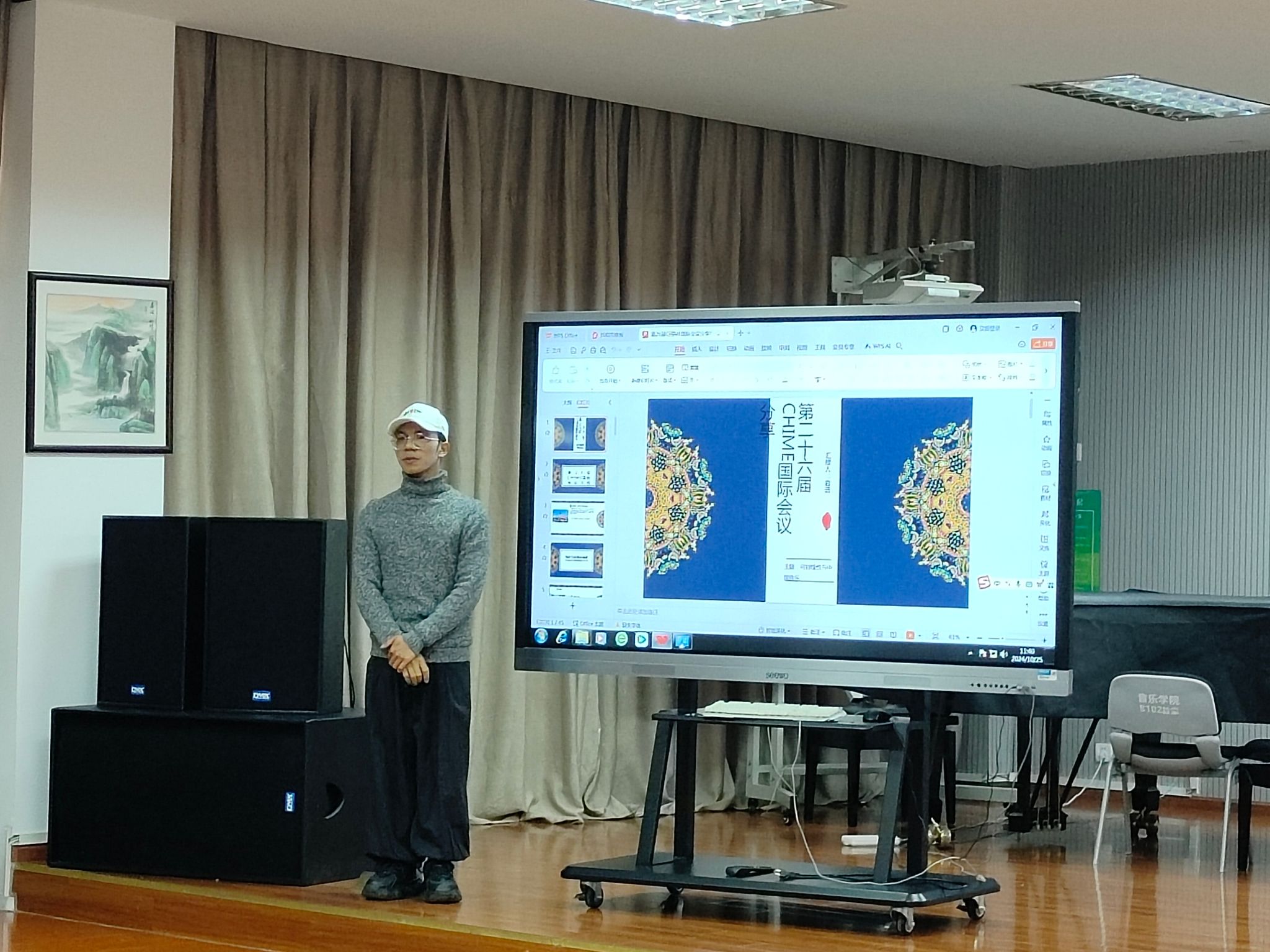音乐学系优秀学生岩进的赴德分享交流将会议推向了高潮。在分享过程中,岩进将其在10月3日至6日在德国参加第26届CHIME国际会议的经历与感悟以“总-分-总”的形式,对会议的情况和研究内容进行了介绍并提出了他个人在民族音乐文化活态化上的三点见解,强调非遗活化工作中守护传统文化核心价值及避免“变容”的重要性。岩进此次跨国高端学术会议的交流再次展现了十大买球官方网站的办学特色。