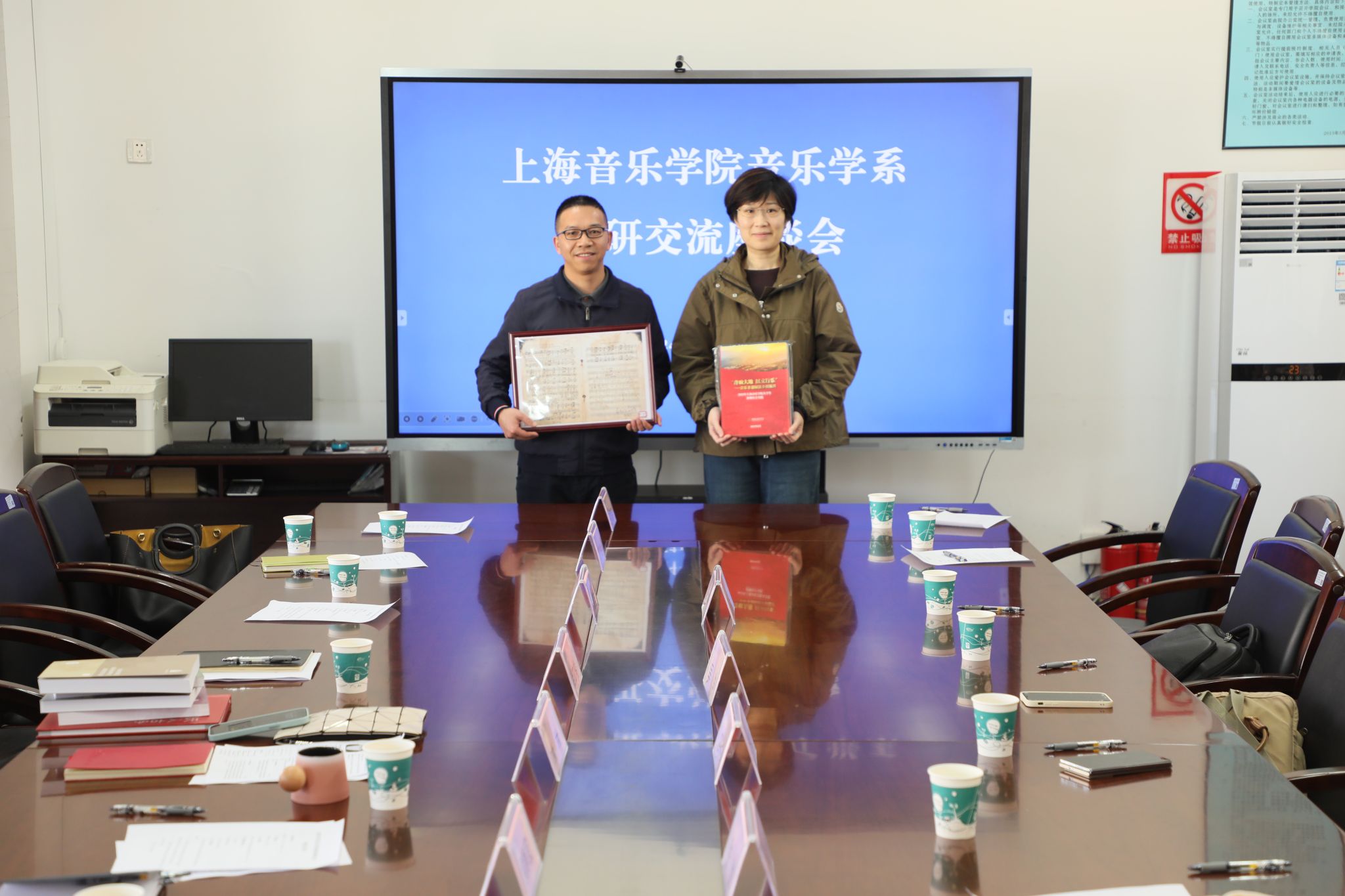 会后,冯长春教授向我院赠送了上海十大买球官方网站音乐学系本科生优秀论文集、建系30周年纪念册及文创纪念产品,张洋向我院赠送了上海十大买球官方网站原院长、著名作曲家贺绿汀创作的《游击队歌》创作手稿复印件。来访人员参观了十大买球官方网站少数民族器乐展示厅,认为基于云南的地域优势和历史积淀,云南民族音乐和云南近现代音乐史的研究大有可为。