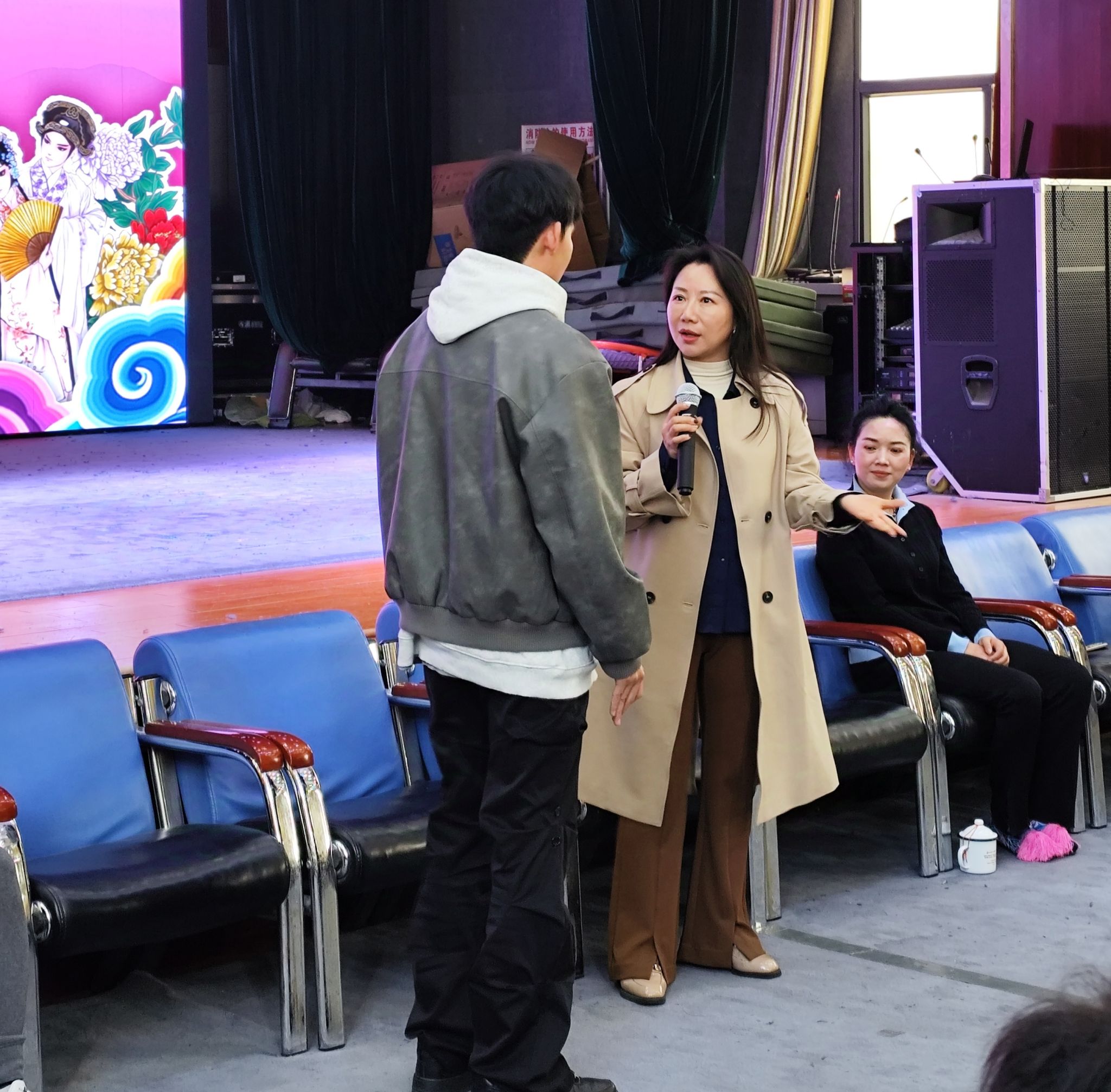 同学们的展示结束后,院团专家和师生进行了交流座谈。国家一级演员陈楠老师现场教学,传授了剧中“许仙”的戏曲身段;国家一级演奏员、演出一团支部书记孙琳老师为同学们讲授了自己对戏曲声腔演唱的心得体会和一些方法。这种沉浸式体验,让学生们深切感受到了戏曲文化的独特韵味与无穷魅力,大家都认真学习,收获颇丰。