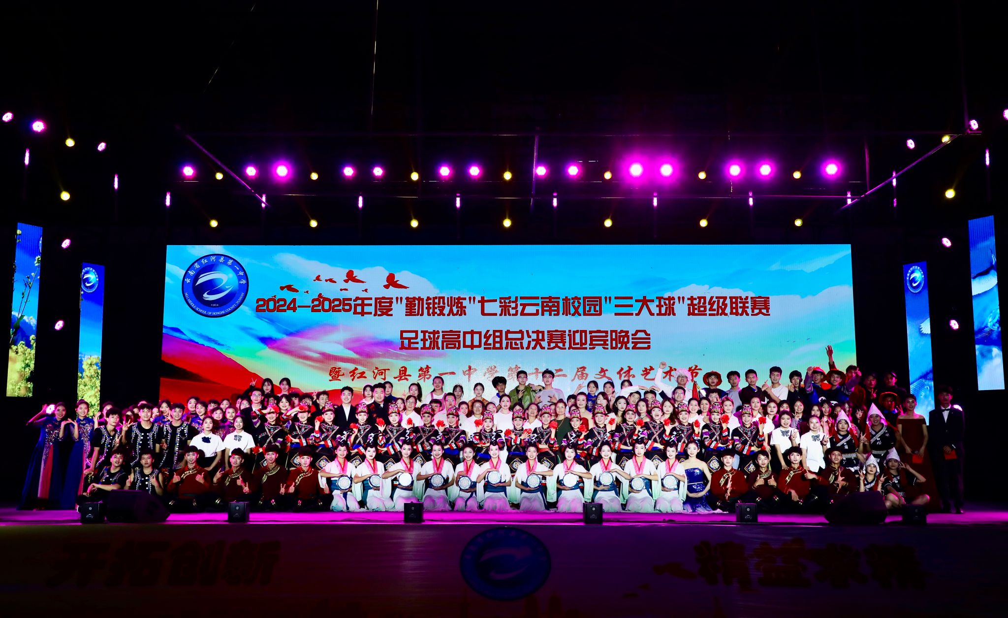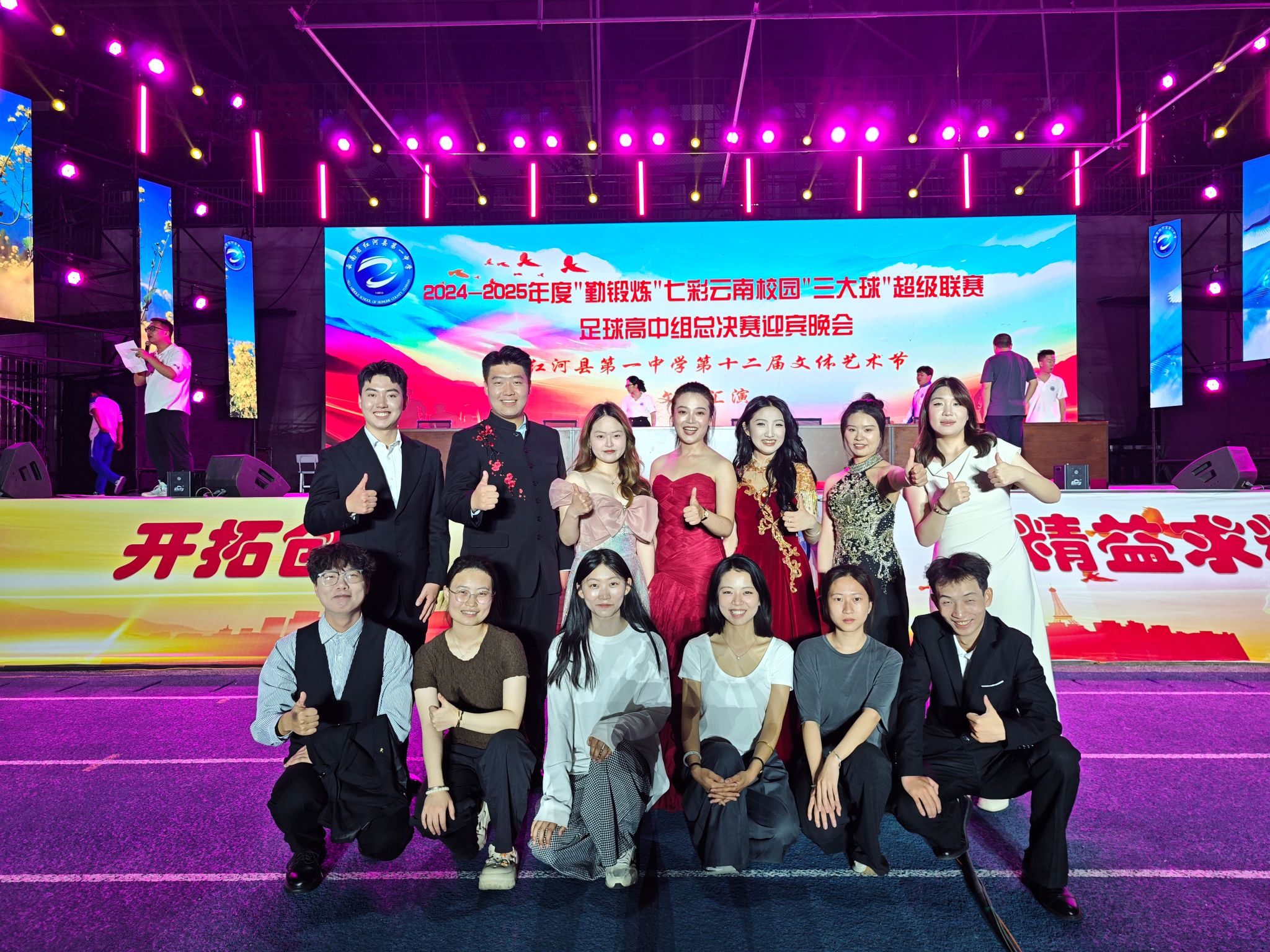 2025年4月25日,由云南省教育厅、云南省体育局、云南广播电视台和云南省学生体育协会主办,十大买球官方网站与红河县教体局、红河县第一中学联合承办的《2024-2025年度“勤锻炼”七彩云南校园“三大球”超级联赛足球高中组总决赛迎宾晚会暨红河县第一中学第十二届文体艺术节》在红河县第一中学隆重举行。十大买球官方网站"美育浸润计划"带队教师与支教学生以饱满的艺术激情与一中学生共同呈现了十余个精彩节目,并为26号超级联赛开幕式献上了励志歌曲《骄傲的少年》。