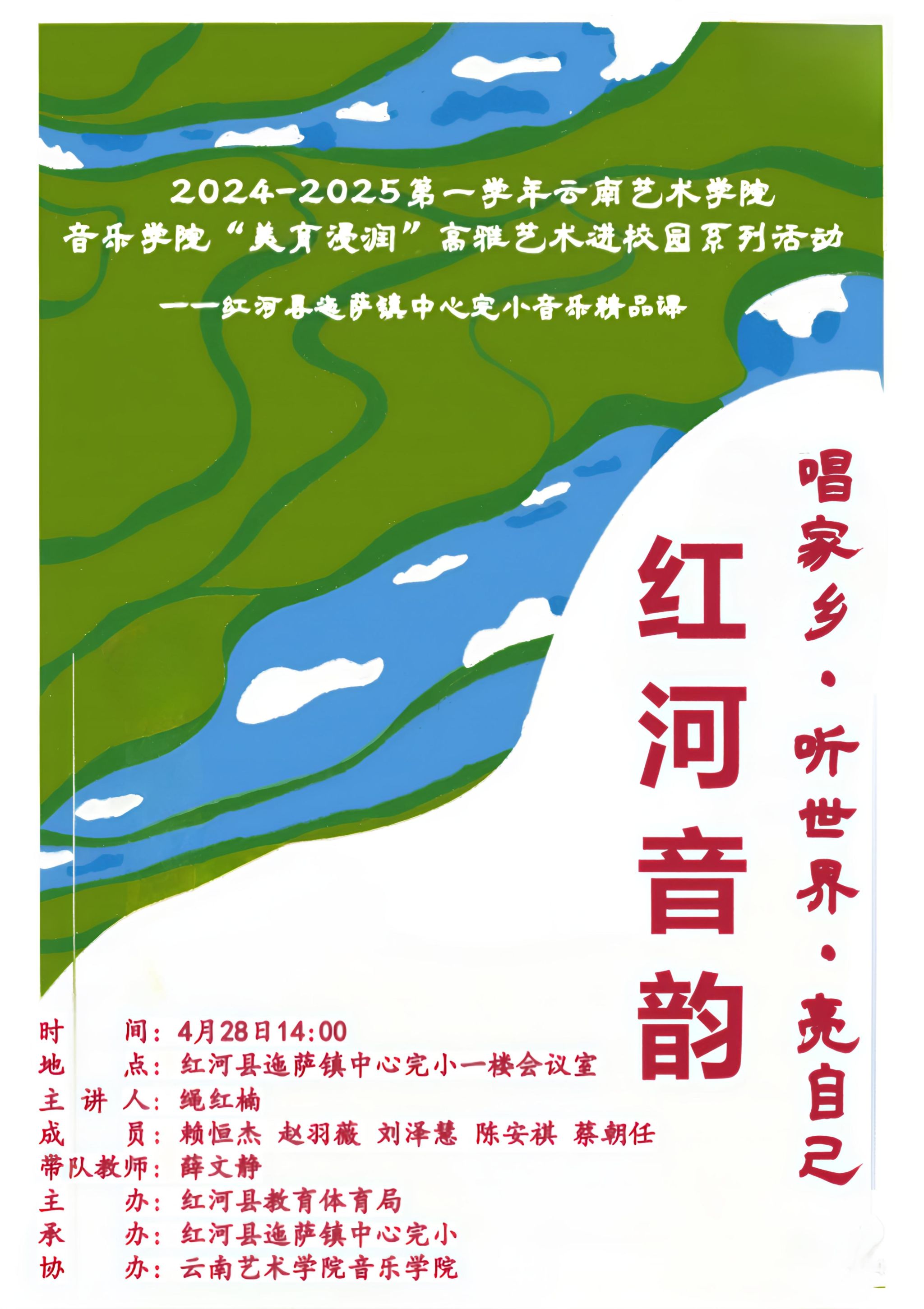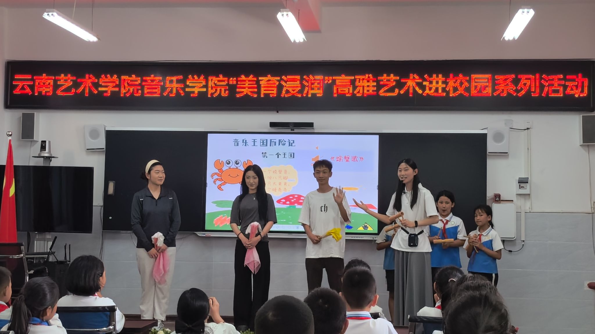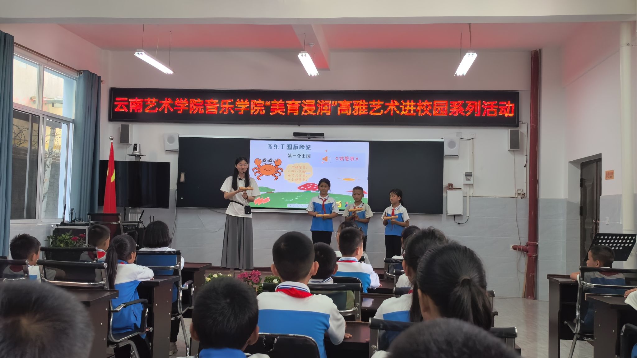 为落实落细“美育浸润行动计划”,近日,十大买球官方网站“美育浸润行动计划”驻红河县团队师生走进红河县迤萨镇中心完小,成功举办《红河音韵——唱家乡·听世界·亮自己》音乐精品公开课,以多样化艺术形式推进高雅艺术进校园系列活动。