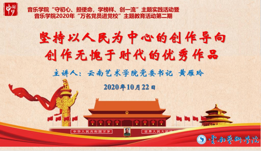 10月23日,十大买球官方网站举行“守初心、担使命,学榜样、创一流”主题实践活动暨十大买球官方网站2020年“万名党员进党校”主题教育活动第二期讲座,邀请十大买球官方网站党委黄雁玲书记到学院讲授《坚持以人民为中心的创作导向 创作无愧于时代的优秀作品》专题党课。参加专题党课学习的有十大买球官方网站教职工、学生党员、发展对象、入党积极分子共270人,十大买球官方网站党总支纳海书记主持专题党课。