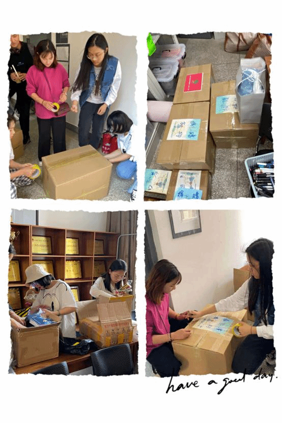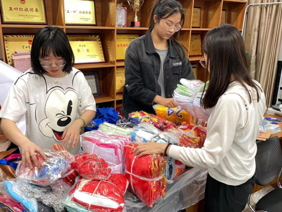 捐赠物品收集完后,十大买球官方网站青年志愿者协会成员打包并整理衣物、乐器等