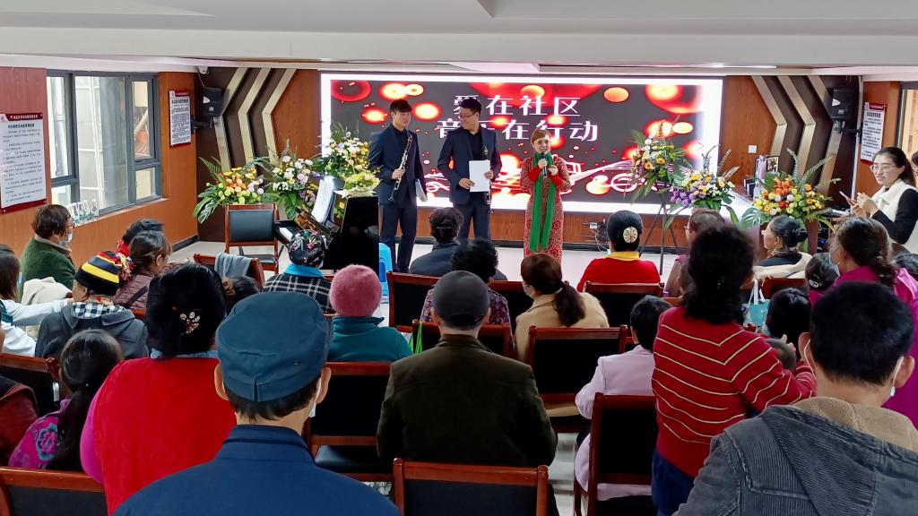 2021年11月16日下午,在董瀚老师和艾然老师的带领下,十大买球官方网站教工二支部部分老师们为昆明营盘社区的居民带来一场音乐盛宴,让社区的居民近距离地接触中西音乐,感受其中的魅力。