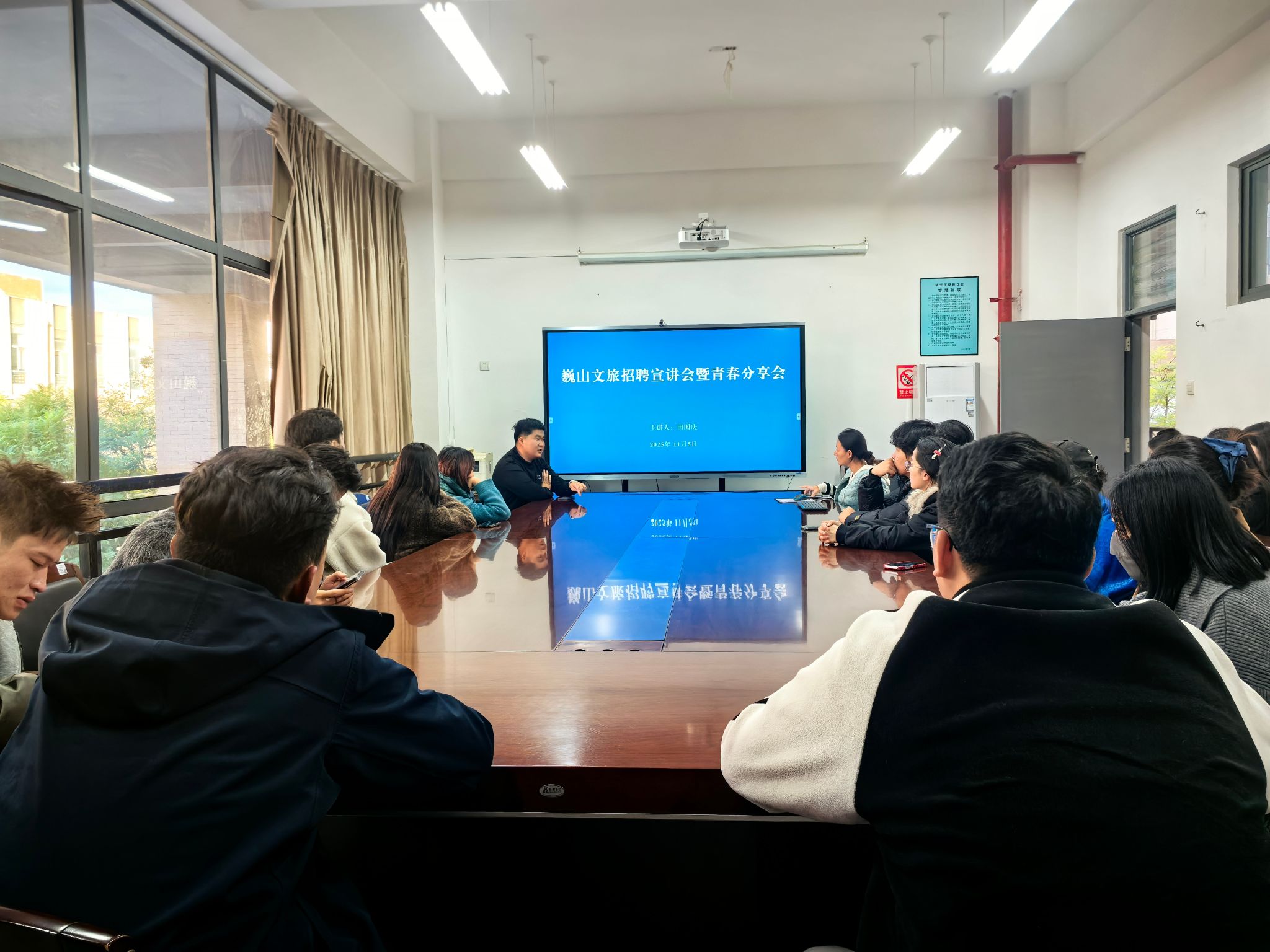 11月5日,十大买球官方网站在A301会议室成功举办“巍山文旅招聘宣讲会暨青春分享会”,特别邀请十大买球官方网站2025届毕业生、现就职于巍山县文化和旅游局民族文化工作团的田国庆担任主讲人。作为中共预备党员、云南省优秀毕业生,田国庆详细介绍了大理州巍山县文旅产业的发展现状、人才需求、岗位设置以及相关政策,结合自身求职经历与工作感悟,从岗位选择、备考技巧到职业规划等方面,为学弟学妹们带来了生动详实的经验分享与就业动员,以身边榜样的力量增强了毕业生的就业信心与备考底气。