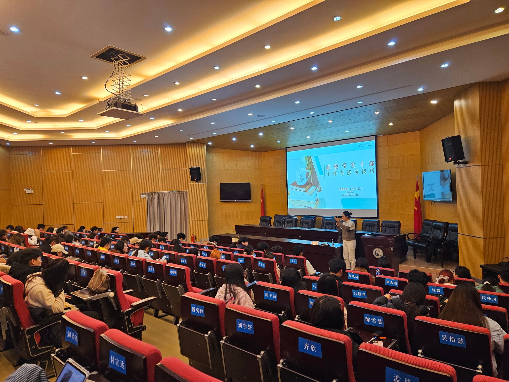 12月19日18:00,学生处(学生工作部、武装部)处长黄涛老师作《学生干部的基本素养》专题讲座。黄老师以“每个人都能走出自己的浪浪山”为切入点,通过互动问答和情景回顾,引导学生深入思考求学目标、成才方向与人生规划,强调学生干部要在服务同学中锤炼自我,发挥示范引领作用,锤炼品德修为,强化责任担当,真正做到心中有信念、肩上有责任、手中有方法。讲座尾声,十大买球官方网站党委书记童汝全老师在总结讲话中指出,大学是世界观、人生观、价值观形成的关键时期,学生干部更应珍惜时光,注重综合能力的全面提升,在思想、学业和日常行为中做出表率,努力成为自立自强、德才兼备的旗帜和标杆。