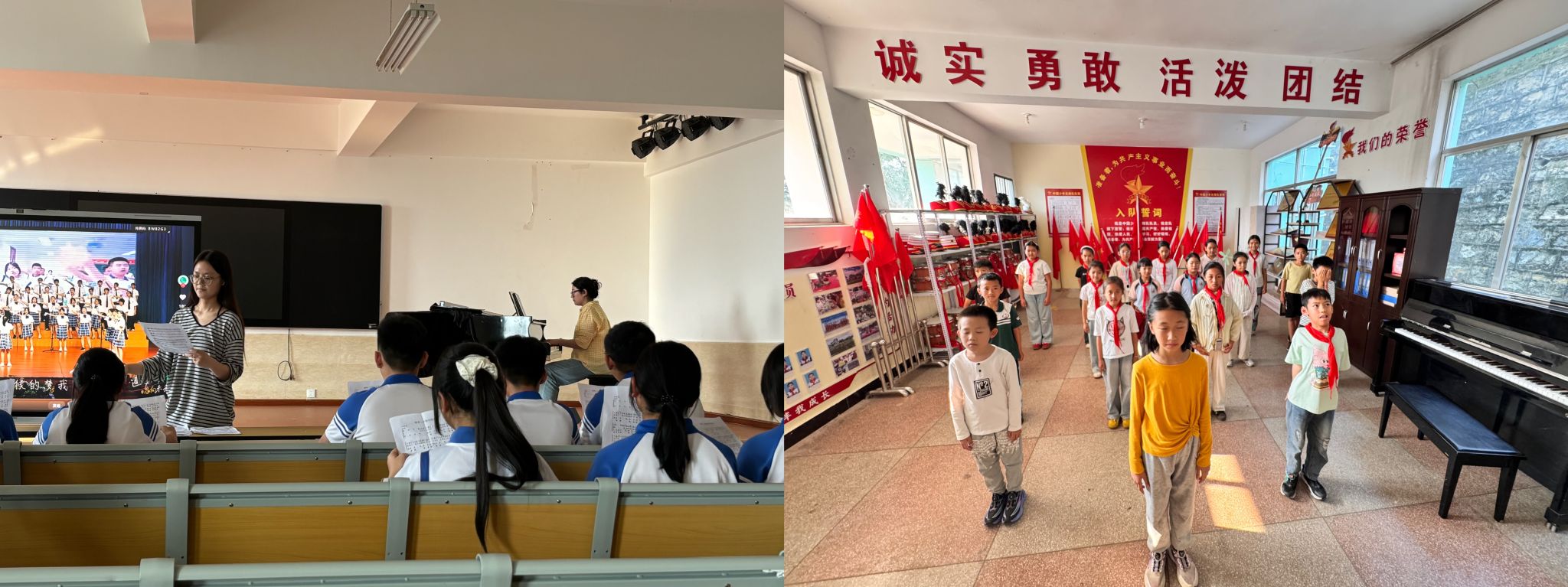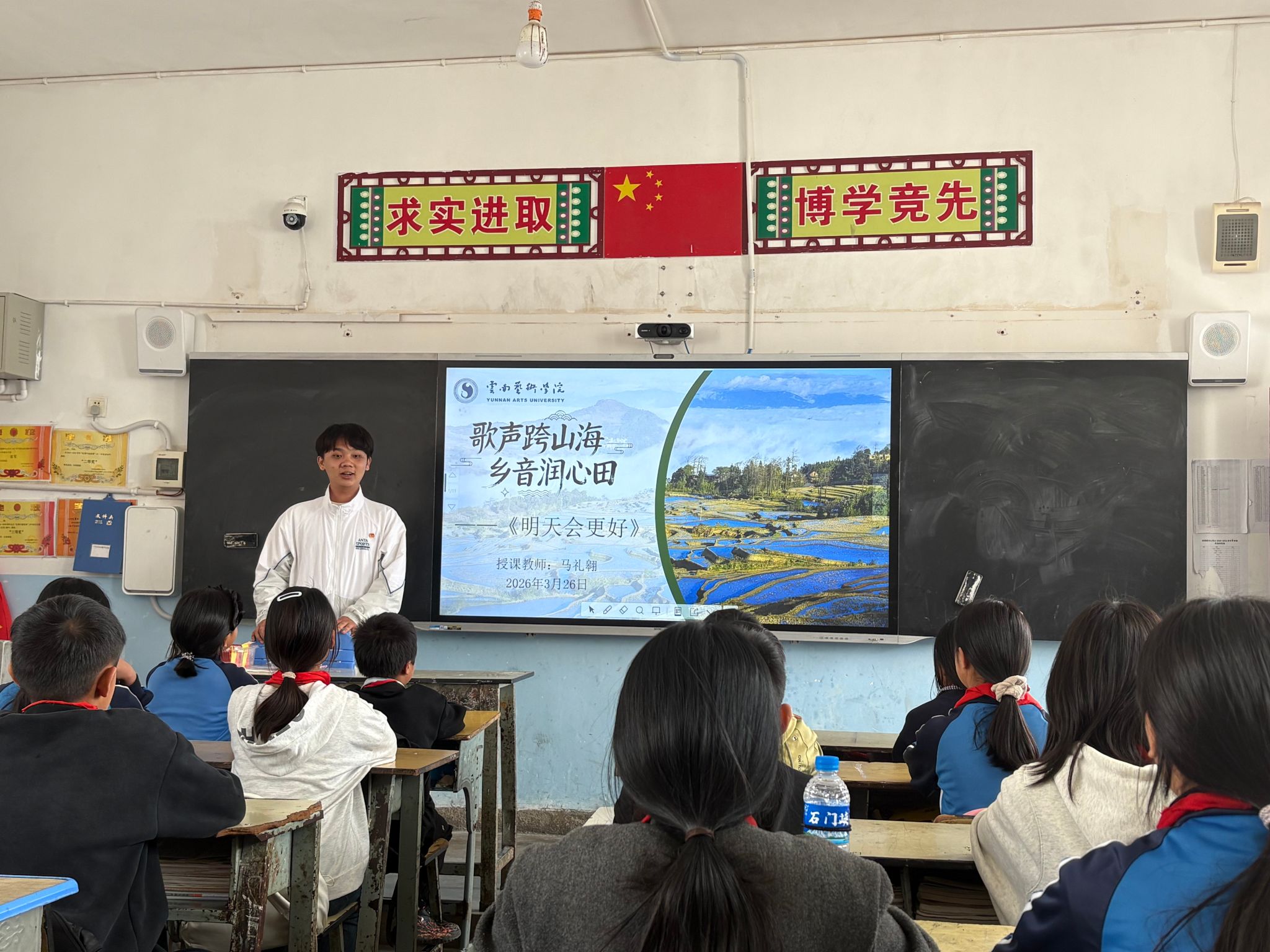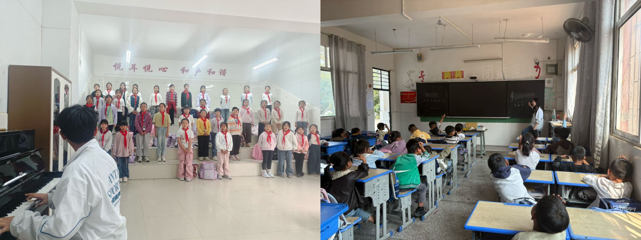 (2026年3月23日,红河一小,马礼翱给学生排练合唱) (万年塘小学,解馥睿给学生上课)