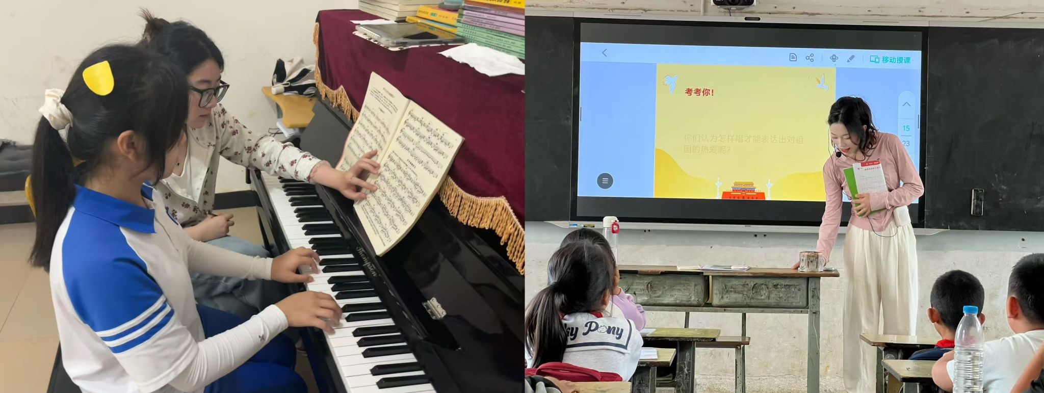 (2026年3月10日,红河一中,贾锦娟为学生上钢琴课)(万年塘小学,孙艺菲给学生上课)