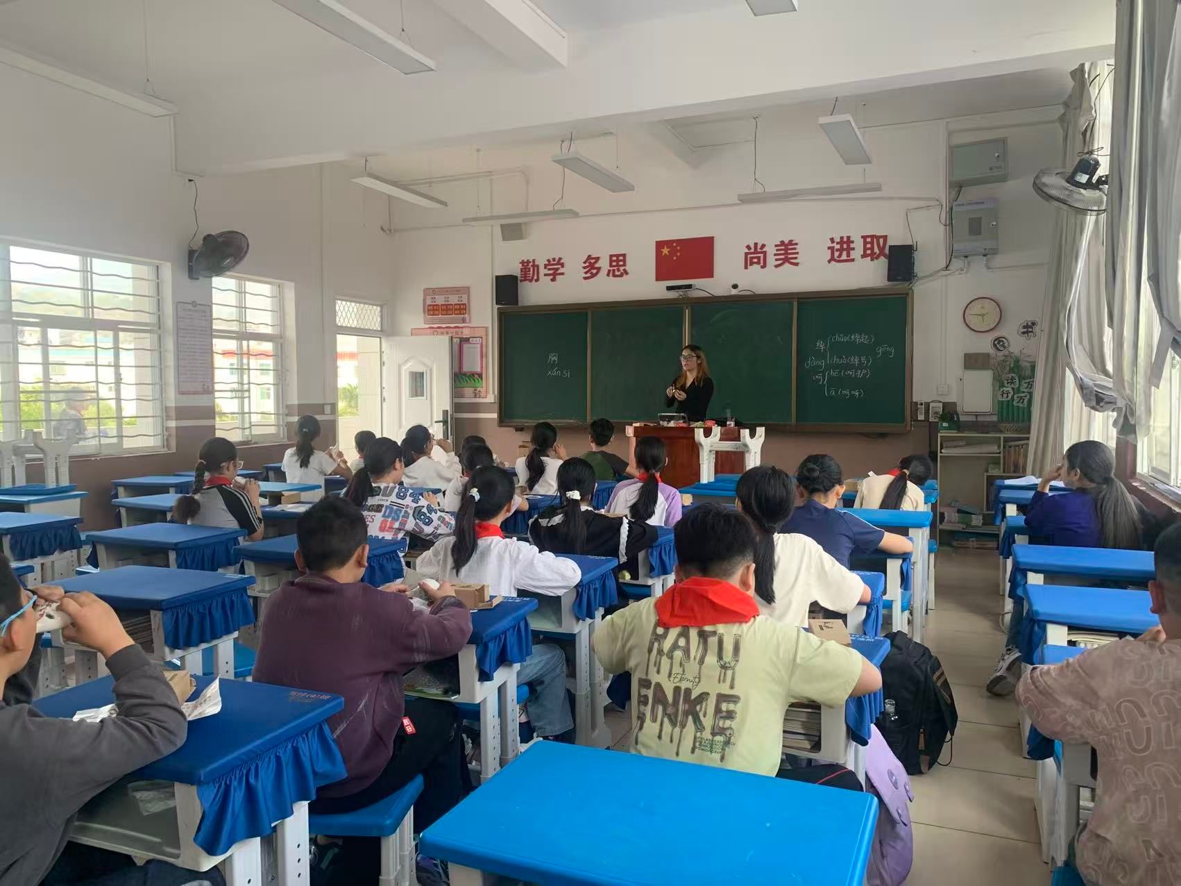 夏陈曦正为富宁第四小学的学生上课