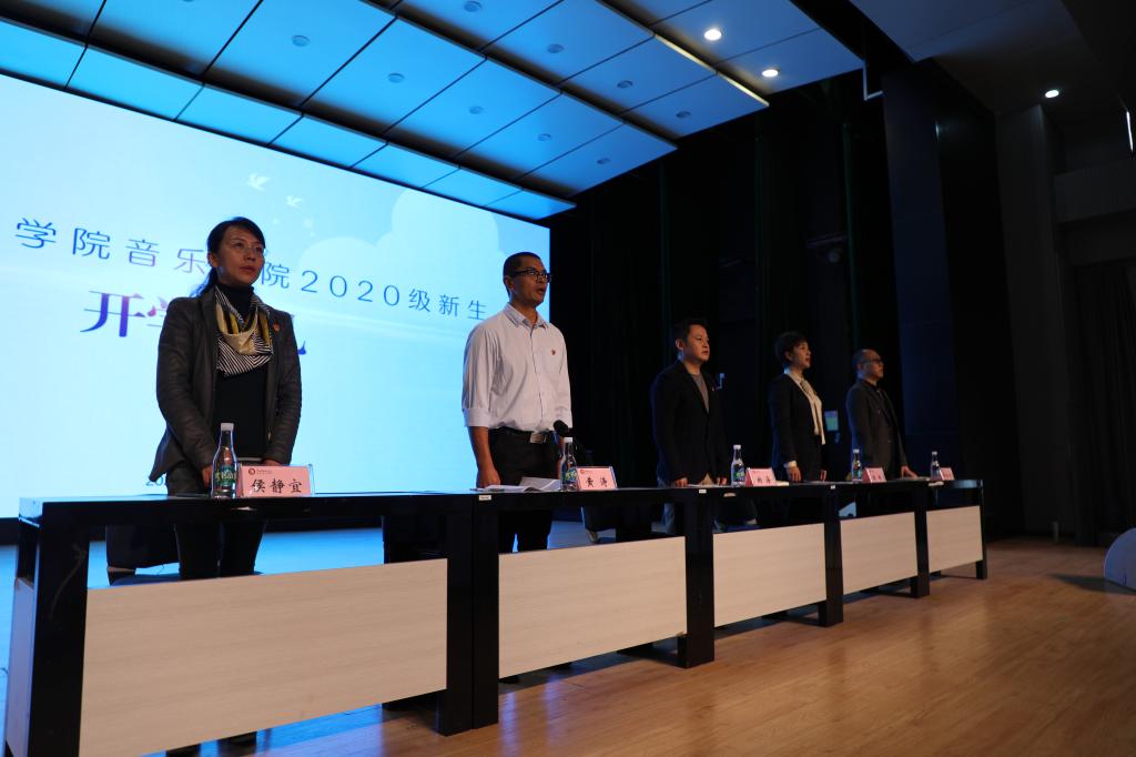 9月18日13:00,十大买球官方网站2020级新生开学典礼在安康音乐厅举行。十大买球官方网站党总支书记纳海老师、十大买球官方网站主持行政工作副院长林林教授、十大买球官方网站党总支副书记黄涛老师、十大买球官方网站副院长师向宁教授、十大买球官方网站副院长侯静宜副教授,以及十大买球官方网站全体系主任、行政科室负责人、辅导员、新生班主任、2020级551名新生参加开学典礼。典礼由黄涛主持。开学典礼在庄严的国歌声中拉开了序幕。