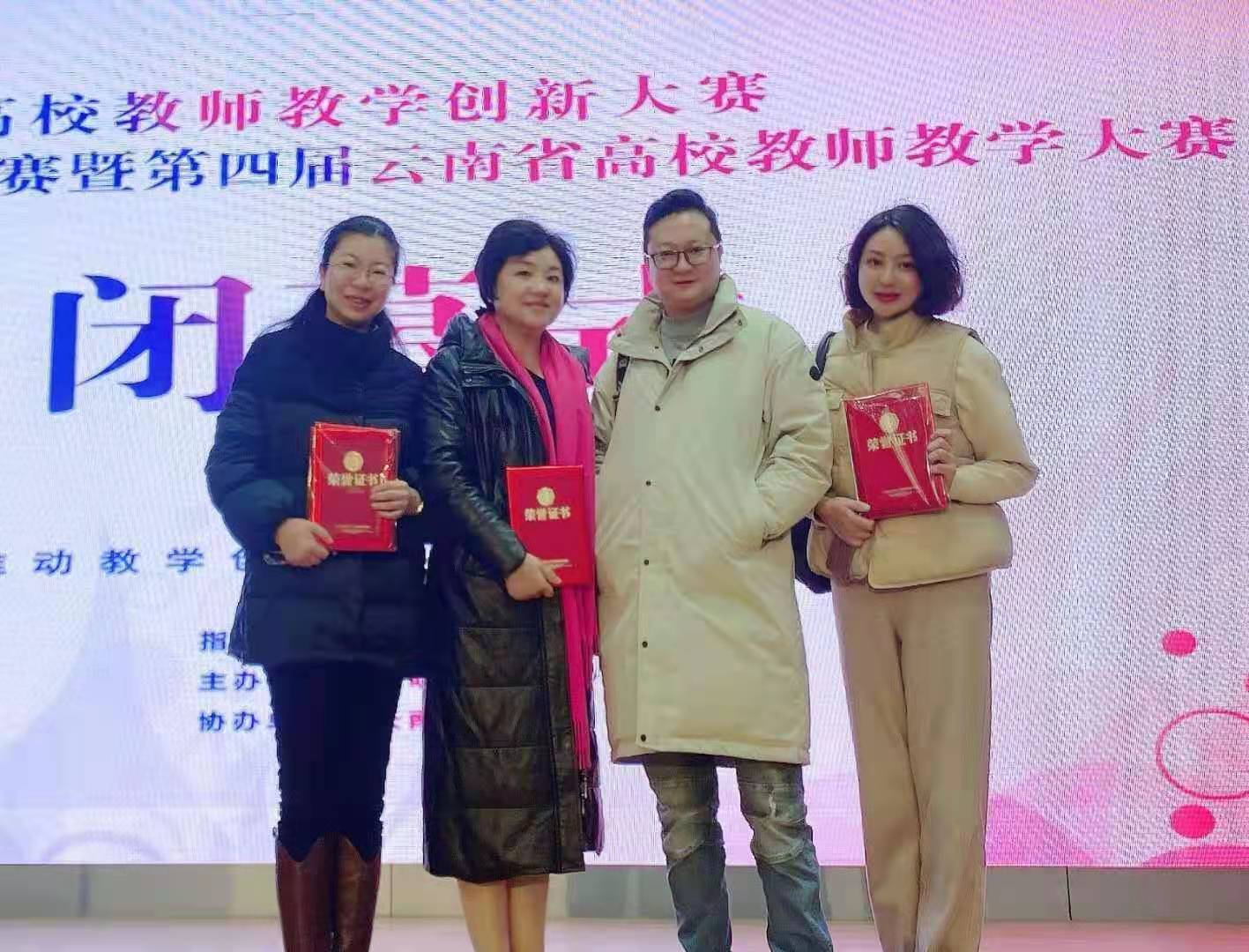 十大买球官方网站王凤莉副教授及其团队成员(罗宇佳、侯静宜、洪露)荣获首届全国高校教师教学创新大赛云南赛区暨第四届云南省教师教学大赛二等奖。