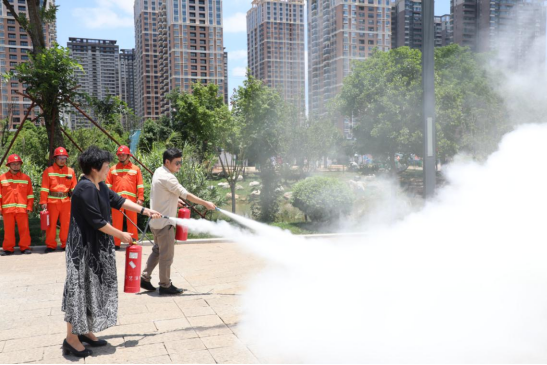 随后,保卫处何斌老师为师生们讲解示范了消防器材的使用常识,传授当师生遇到突发火灾险情时应该如何正确逃生和自救互救的方法。随后,参加演习人员集中到图书馆前空地,进行了实操灭火演练。学校党政领导纷纷带头,参与了灭火演练。