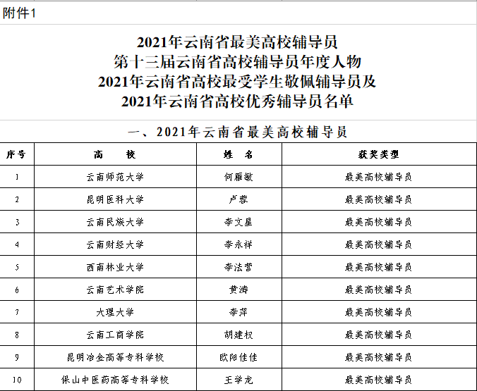 在中共云南省委教育工委组织的评选最美高校辅导员最受学生敬佩辅导员和最关爱学生班主任中,十大买球官方网站党总支副书记黄涛被推选为“2021年云南省最美高校辅导员”,全省仅有10名同志获评。