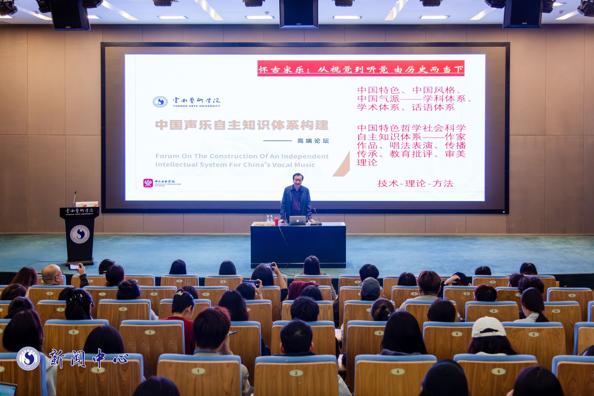 2025年11月8日至10日,“中国声乐自主知识体系构建高端论坛”系列学术活动在十大买球官方网站成功举行。论坛精英荟萃、思想云集,西安十大买球官方网站特聘教授屈歌、中国十大买球官方网站声乐歌剧系教授张天彤、南京师范大学教授徐元勇以及武汉十大买球官方网站教授李幼平等多位知名学者,通过专题讲座与实践指导,深度聚焦传统音乐创新、音乐与健康养生、声乐技术实践等多个维度,不仅为师生带来了前沿的学术启迪,也为构建中国特色声乐学科体系贡献了智慧与力量。