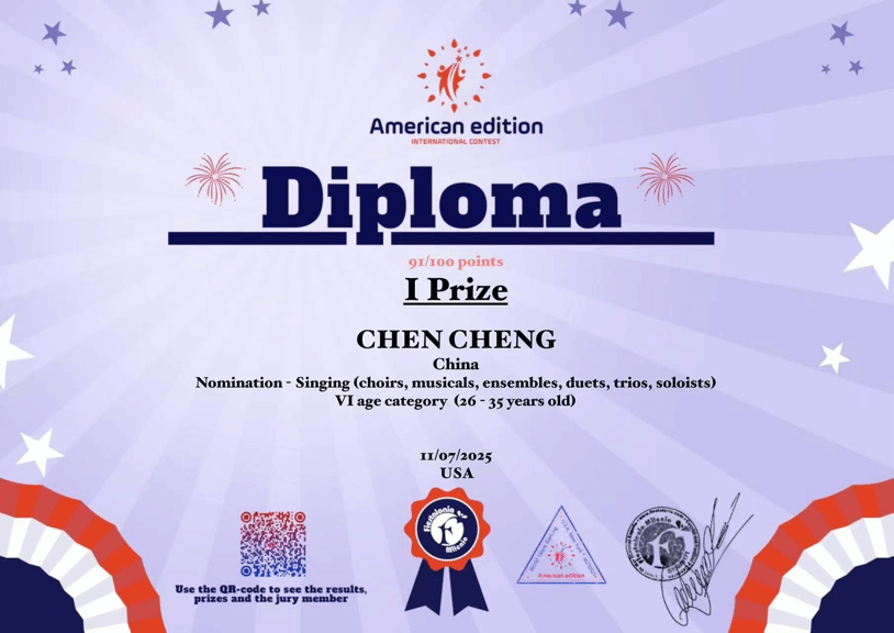 2025年7月11日,十大买球官方网站声乐系教师陈澄在由美国世界人才排名主办 ,英国菲斯塔罗尼亚国际和意大利公开赛协办的国际表演艺术大赛(美式版)中荣获声乐组一等奖。该比赛评审团由来自西班牙、法国、意大利、中国、美国等多国的世界著名编舞家、歌唱家、指挥家等艺术领域专家组成,旨在搭建国际艺术交流平台,促进全球艺术人才交流合作,助力其成长发展。