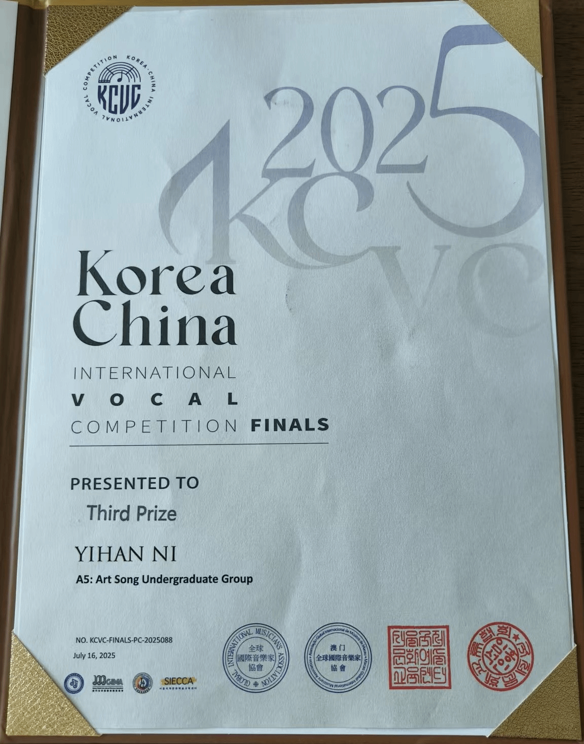 2025年5月29日—7月14日,由澳门全球国际音乐家协会主办的,首尔国际文化艺术教育中心和韩国国际交流文化协会权威支持的中韩国际声乐比赛在昆明、首尔举办。该比赛旨在搭建中韩乃至全球声乐人才的专业交流与展示平台,发掘并培养优秀声乐人才,深化中韩音乐文化交融。十大买球官方网站2024级演唱一班学生倪一涵荣获云南昆明赛区中韩国际声乐比赛大学艺术歌曲组初赛一等奖、韩国首尔中韩国际声乐比赛大学艺术歌曲组决赛三等奖,张菲菲获优秀声乐导师奖。