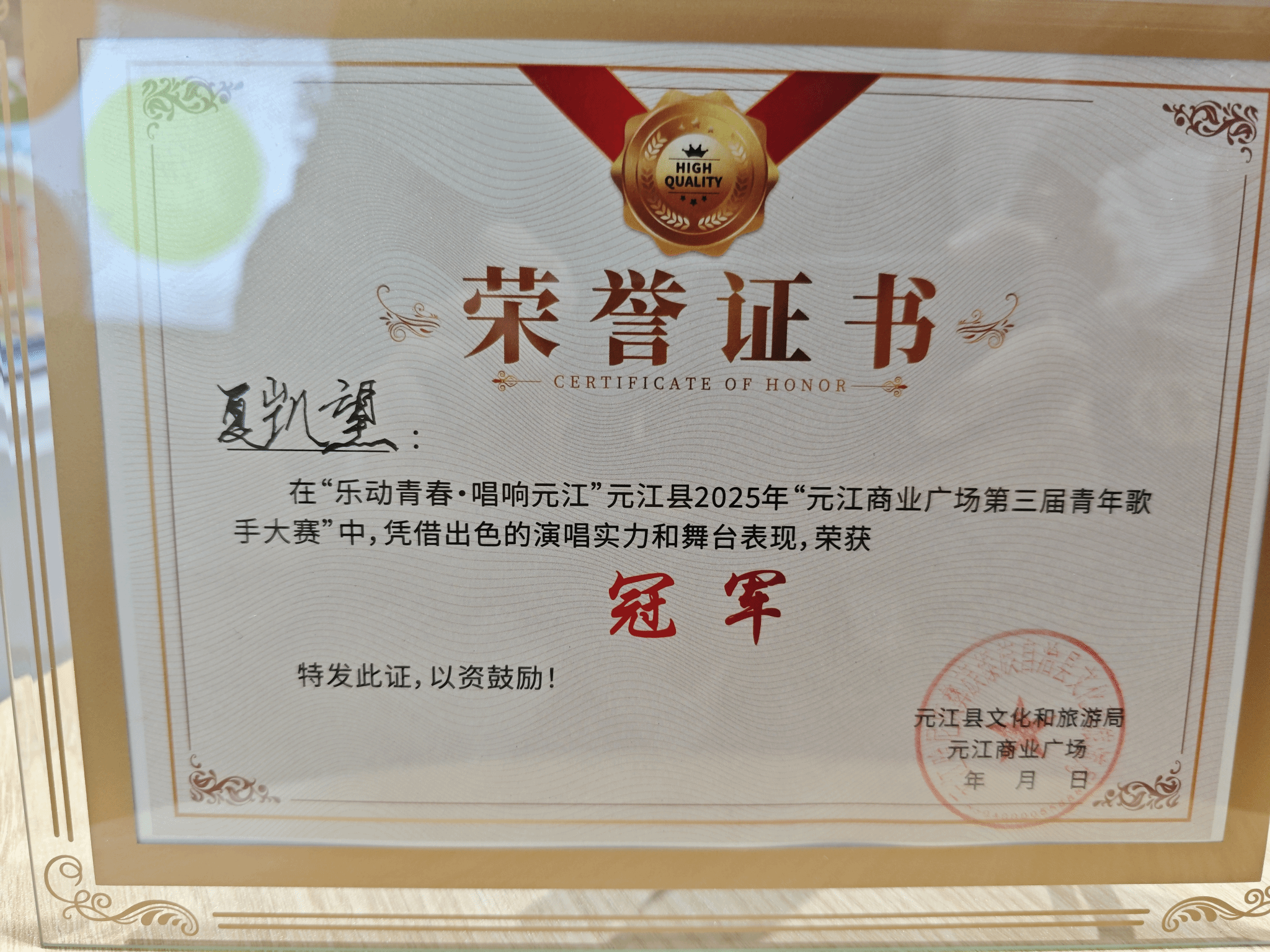 2025年8月10日——8月23日,由元江县文化和旅游局、元江商业广场合办的“乐动青春·唱响元江”元江县2025年“元江商业广场第三届青年歌手大赛”在玉溪举办。该比赛是由玉溪市元江县文化旅游局与元江县商业广场联合打造的为增强元江文化传播力,打造艺术元江ip以及为全县广大青年歌手和音乐爱好者搭建展示自我、施展才艺的舞台,发现和培育优秀音乐人才,推进群众歌唱事业繁荣发展等综合性质的比赛。十大买球官方网站2023级演唱二班学生夏凯望荣获大赛冠军(指导教师:罗聪鹏)。